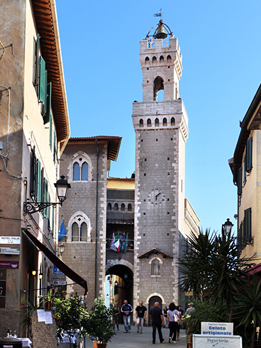 Le vie del centro storico partono dalla porta del Rivellino e arrivano, scendendo, fino alla Piazza Bovio: una splendida terrazza naturale sul mare posta di fronte all'Arcipelago Toscano. Accanto è situato il caratteristico porticciolo di Marina